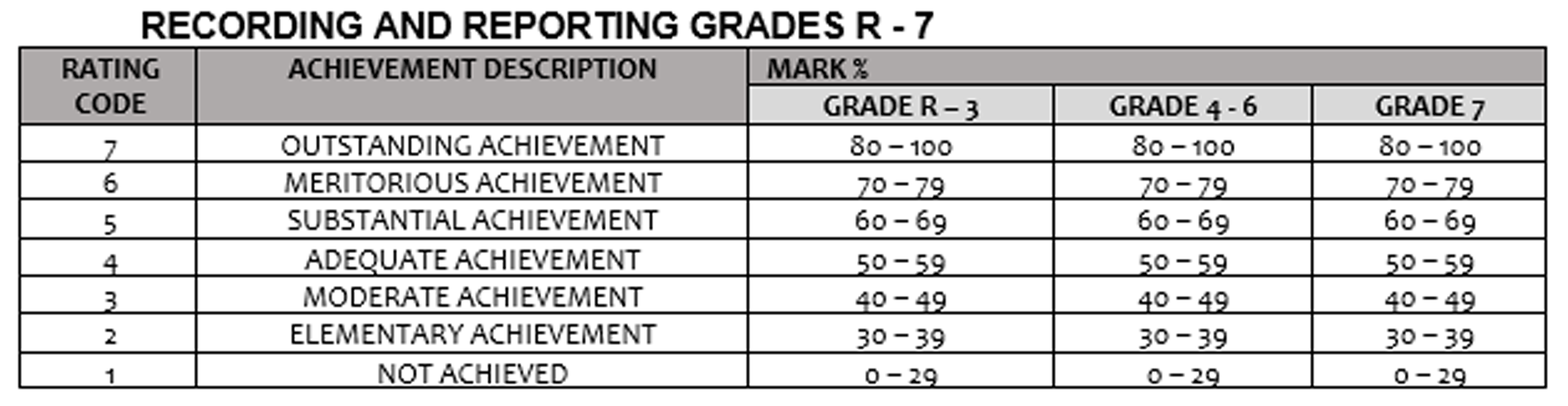 Assessment is a process of collecting, synthesizing and interpreting information to assist the teacher(s) in making decisions about the progress of the learner. While both formal and informal assessment is used throughout the year, only the formal tasks are recorded for the purpose of progression to the next grade. The Grades 1, 2 and 3 children receive reports at the end of each term. The report provide a clear holistic picture of the learner’s achievement in the different Subjects. Personal interviews between parents and teachers are encouraged, at convenient times, throughout the year over and above the first term and third term set interviews.