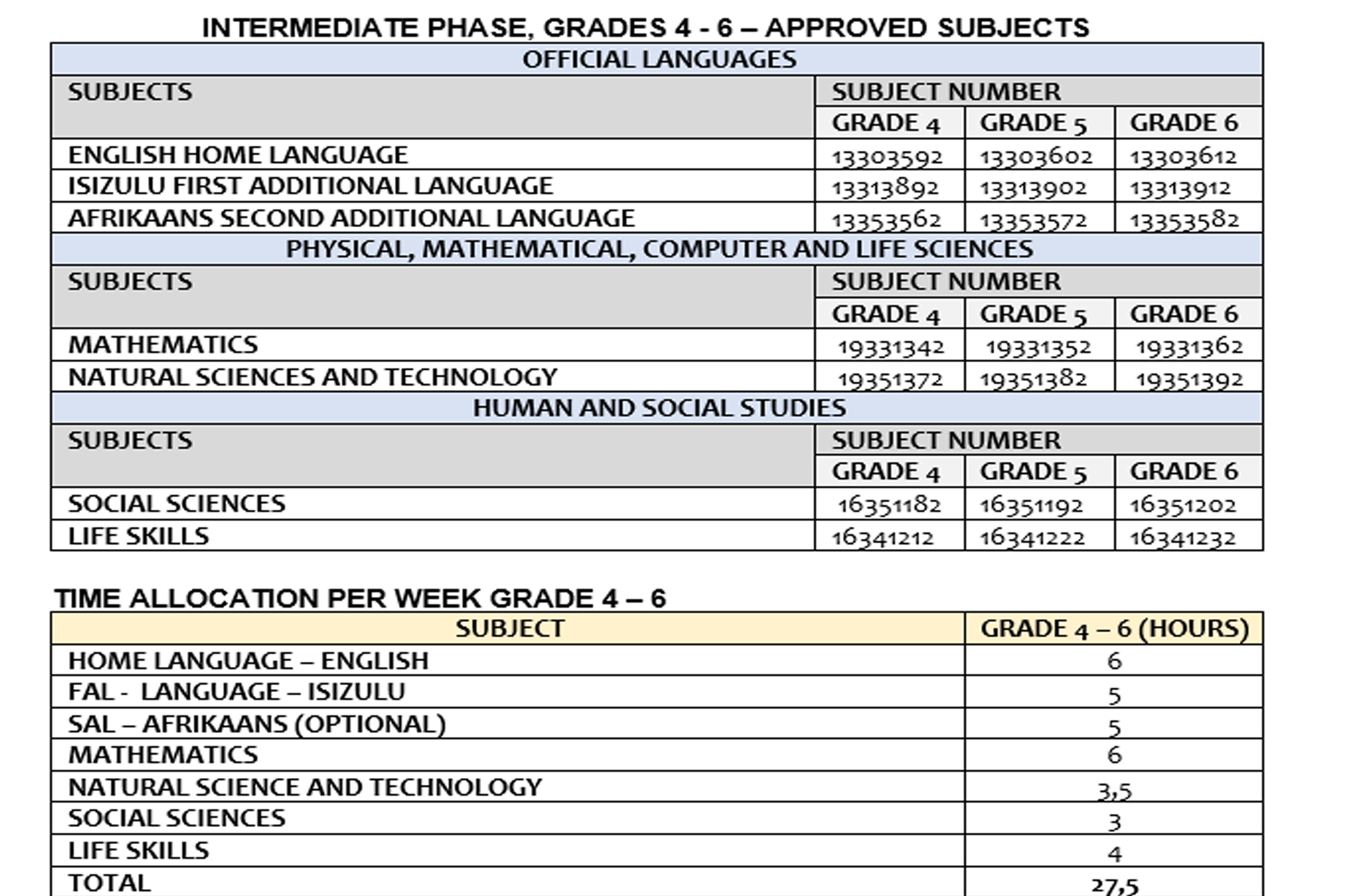 - The instructional time for Grades 4, 5 and 6 is 27,5 hours. The time allocated to breaks, assemblies and extramural activities is excluded from the time allocation..